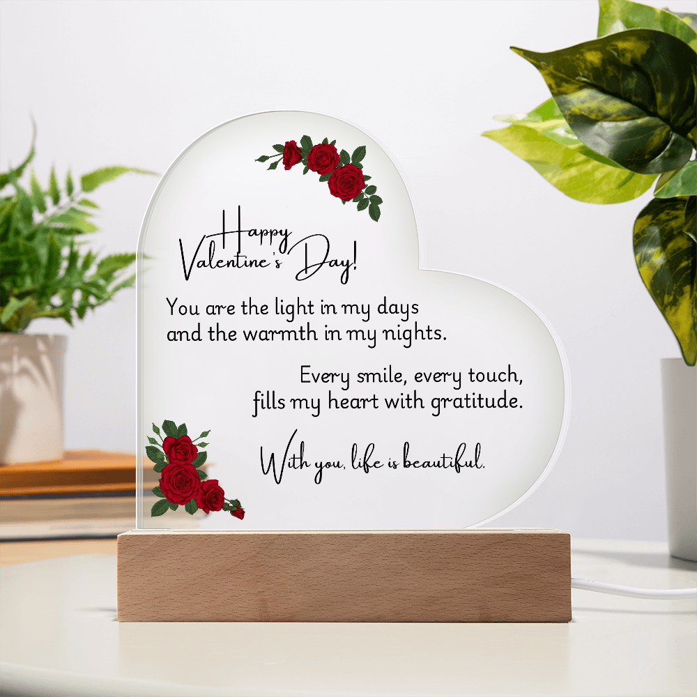 You are the light in my days and the warmth in my nights. Every smile, every touch, fills my heart with gratitude.