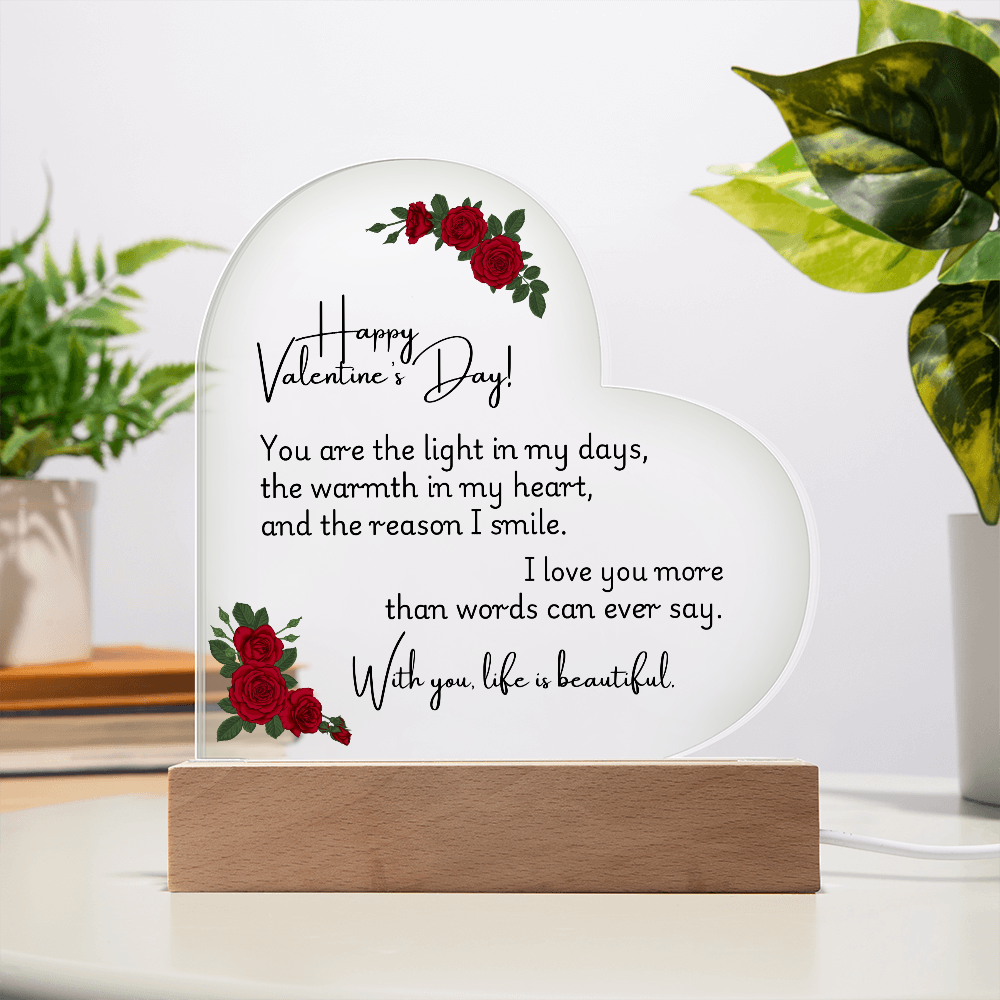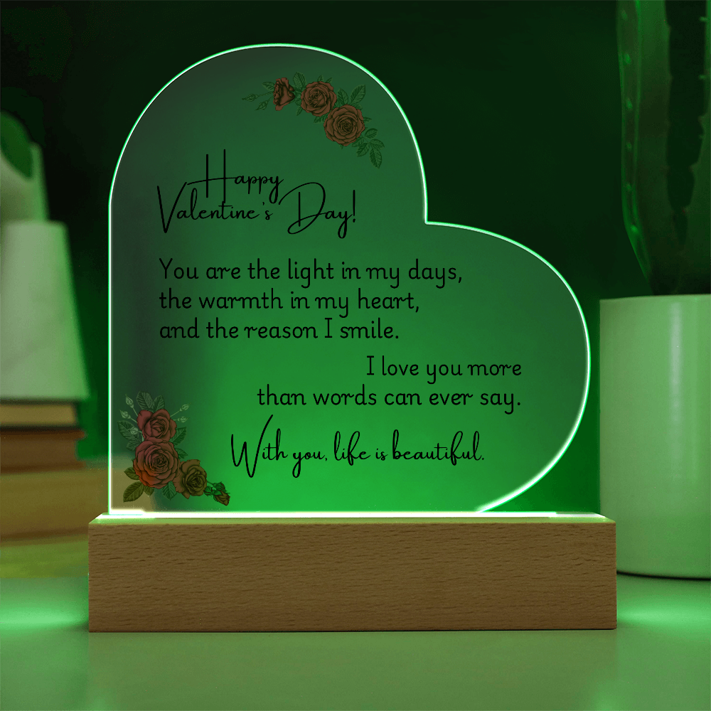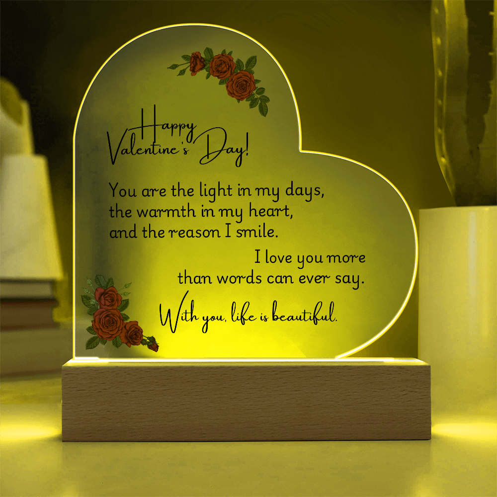 Your heart will be crafted from premium acrylic with a professionally printed design for a polished look. It comes with a stylish wooden LED base, and you can choose between a USB plug-in option OR a cordless battery-operated option (requires 2 AAA batteries, not included). Both LED bases feature 7 vibrant colors, allowing you to customize the lighting with various color changes and dynamic cycles.