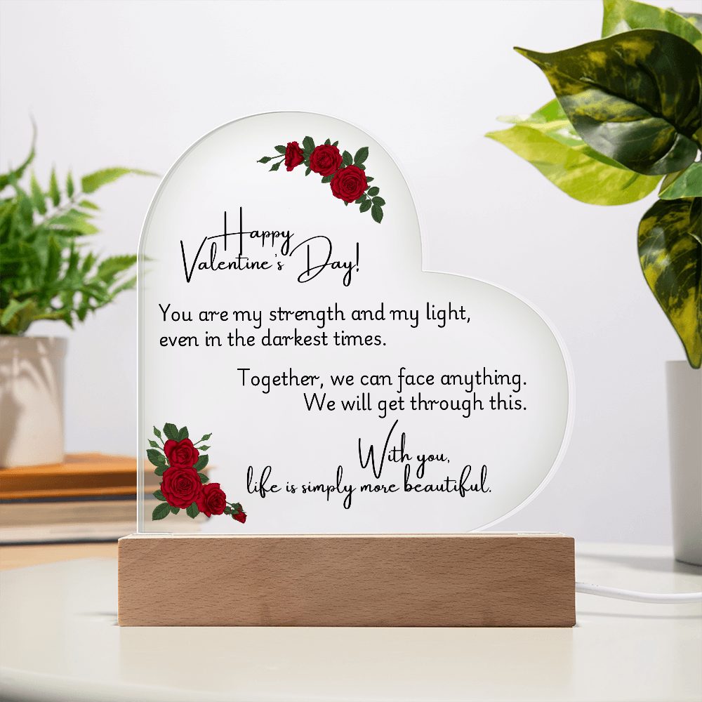 Your heart will be crafted from premium acrylic with a professionally printed design for a polished look. It comes with a stylish wooden LED base, and you can choose between a USB plug-in option OR a cordless battery-operated option (requires 2 AAA batteries, not included). Both LED bases feature 7 vibrant colors, allowing you to customize the lighting with various color changes and dynamic cycles.