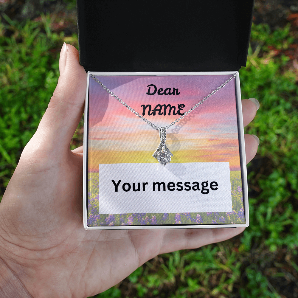 This beautiful Alluring Beauty necklace features a petite ribbon shaped pendant that is sure to dazzle your special someone.