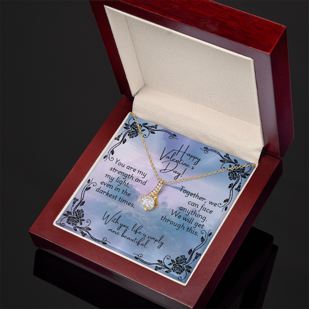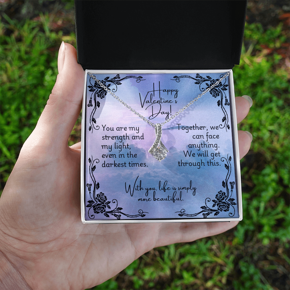 This beautiful Alluring Beauty necklace features a petite ribbon shaped pendant that is sure to dazzle your special someone.
