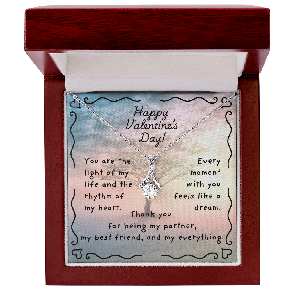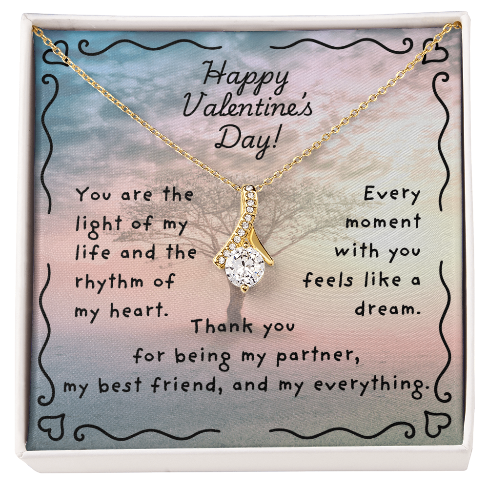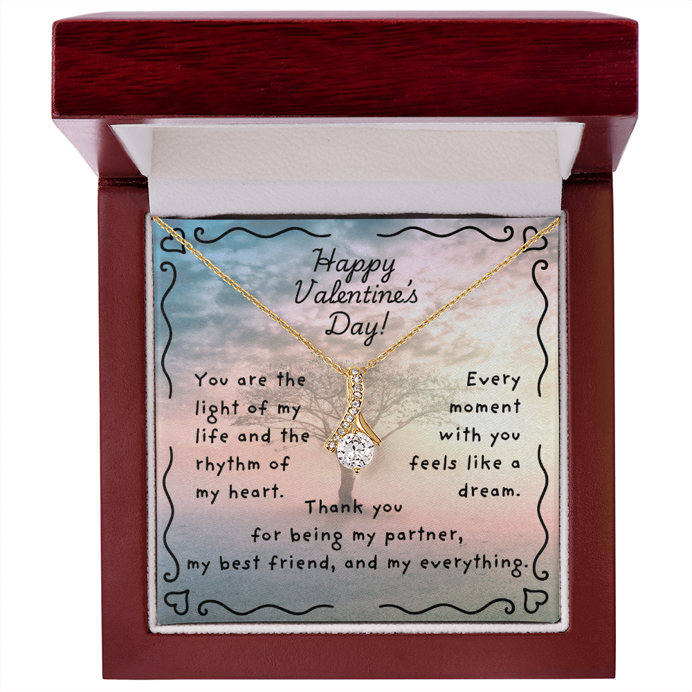 This beautiful Alluring Beauty necklace features a petite ribbon shaped pendant that is sure to dazzle your special someone.