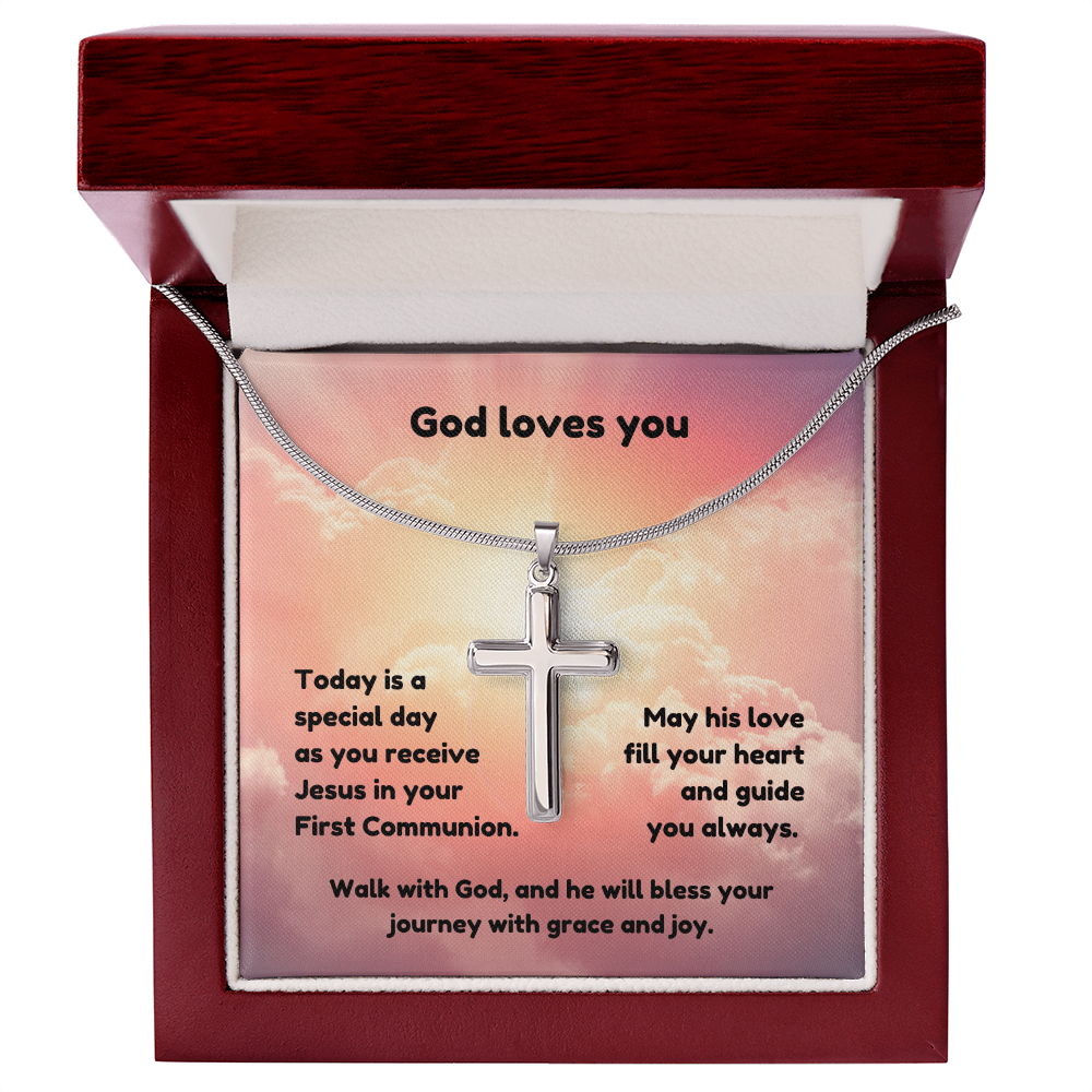 Wear your faith proudly with this stunning artisan-crafted Stainless Steel Cross Necklace. Sizing is appropriate for all ages, and tasteful for both boys and girls. The artisan crafted detail makes this pendant stand out from other cross necklaces. Includes a luxury adjustable snake chain (18" - 22") and attaches with an easy to use lobster clasp.