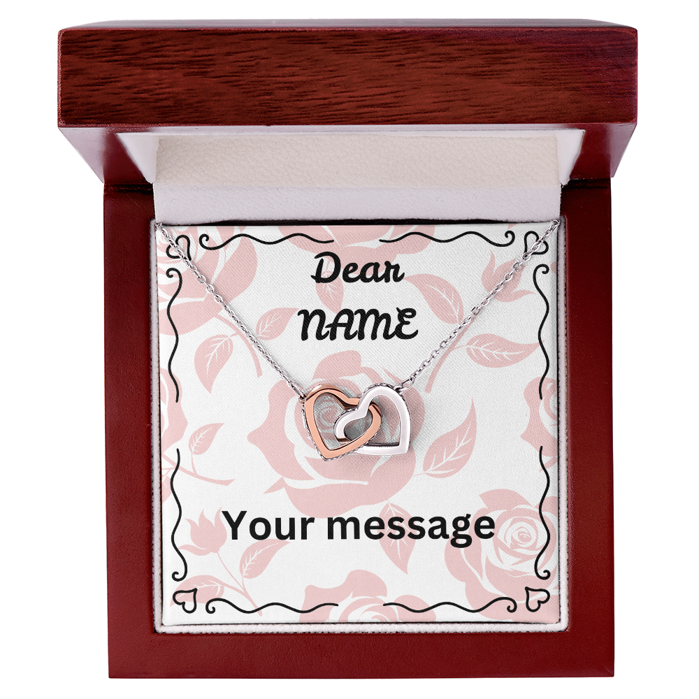 These interlocked hearts, a timeless symbol of an unbreakable bond and enduring love between two souls, features two lovely hearts embellished with cubic zirconia crystals. This necklace is the perfect accessory for everyday wear.