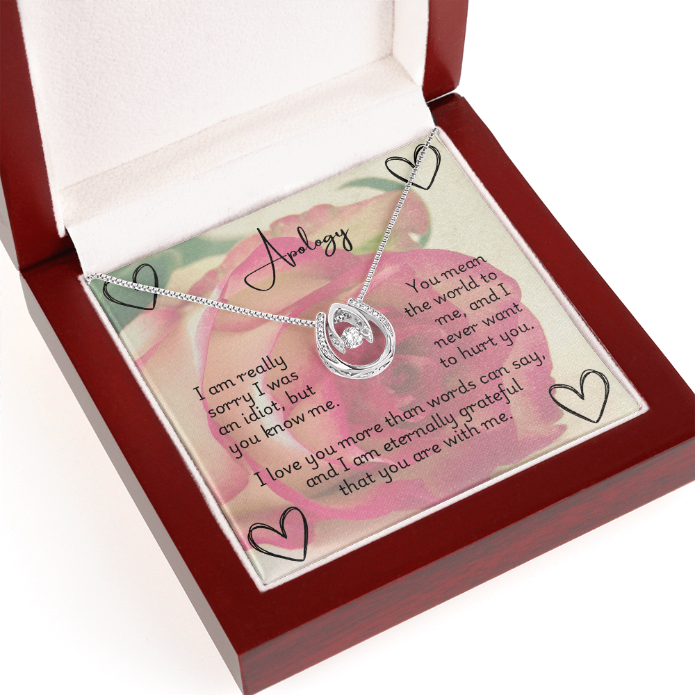 This Lucky In Love Necklace shows how lucky you are to have that special someone in your life. Hand crafted details make this necklace a stand out. This versatile necklace is dipped in white gold and set with shimmering crystals. A dancing center Cubic Zirconia is suspended from two fine points and is designed so as to not touch the skin but continually move in a vibrating fashion.