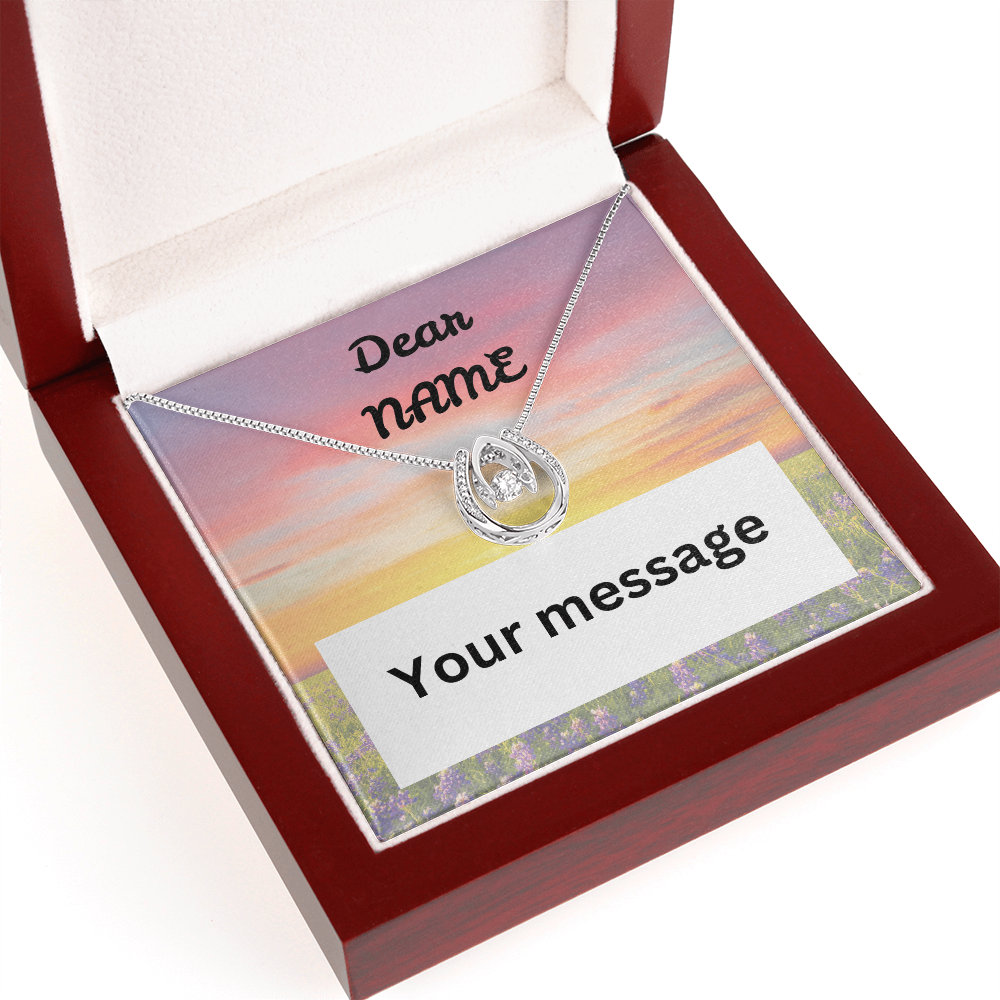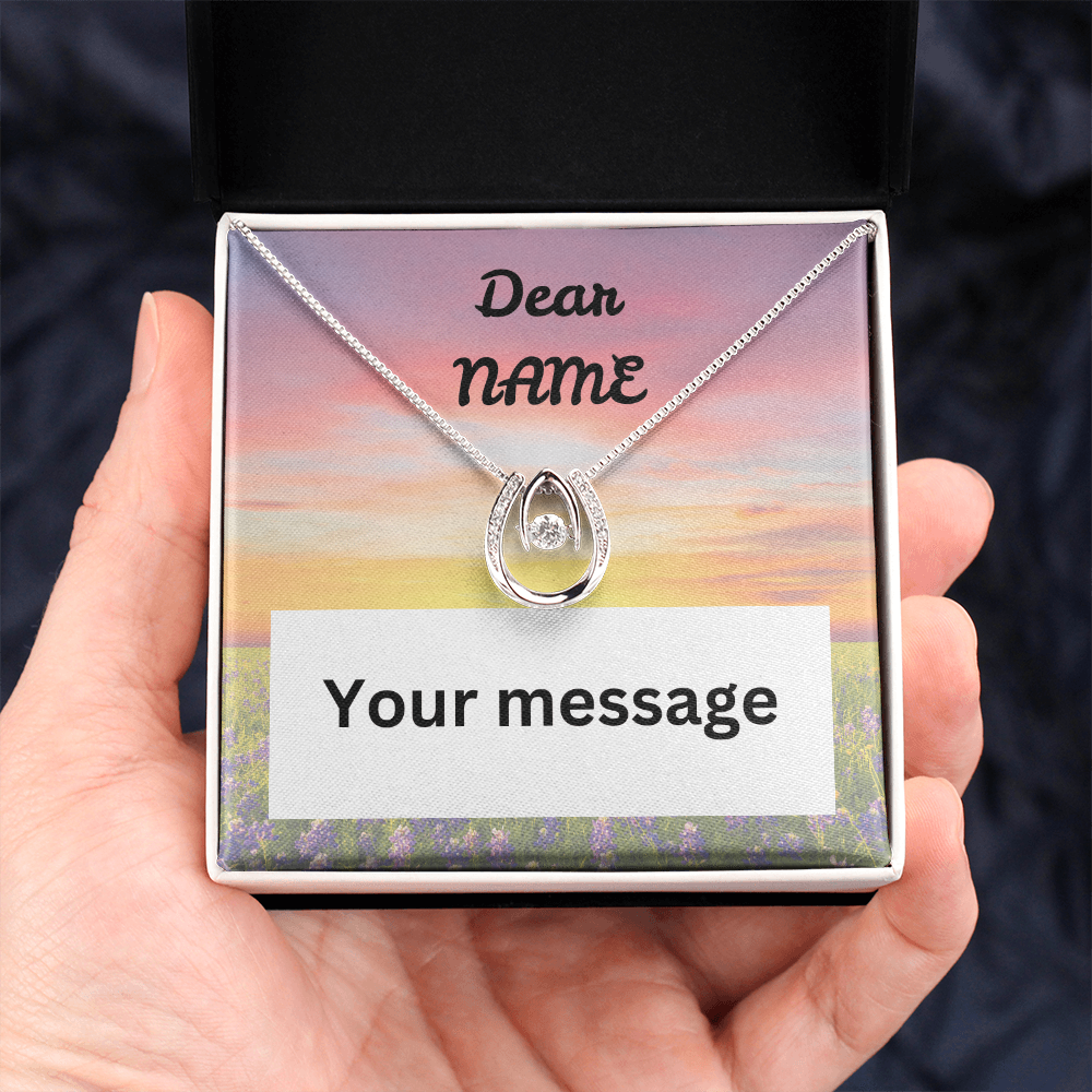 This Lucky In Love Necklace shows how lucky you are to have that special someone in your life. Hand crafted details make this necklace a stand out. This versatile necklace is dipped in white gold and set with shimmering crystals. A dancing center Cubic Zirconia is suspended from two fine points and is designed so as to not touch the skin but continually move in a vibrating fashion.
