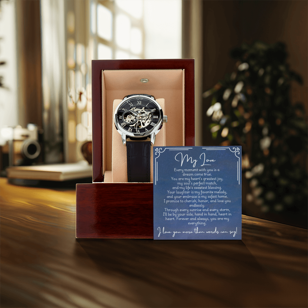 Your watch is lovingly packaged in a mahogany style luxury box for easy gifting.